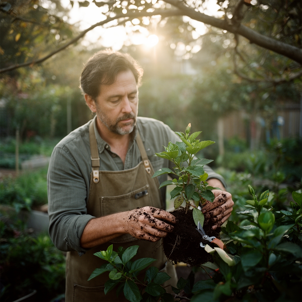 Soil amendments adjust cation exchange capacity after pruning stress. Apply a 4-4-4 organic meal blending feather meal, bone meal, and kelp at 2 tablespoons per gallon of potting volume. This ratio supports vegetative recovery without promoting excessive nitrogen-driven shoot extension. A pH meter calibrated to 6.0-6.5 ensures nutrient availability in the slightly acidic range hibiscus roots prefer. Mycorrhizal inoculant (50 spores per gram minimum) colonizes new root tips that develop post-pruning, increasing phosphorus uptake for bud set.